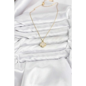 316L Çelik Zincir Gold Renk Zirkon Taşlı Yonca Model Kadın Kolye