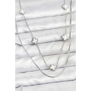 316L Çelik Zincir Gümüş Renk Sedefli Yonca Kadın Kolye