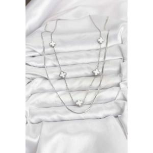 316L Çelik Zincir Gümüş Renk İtalyan Zincirli Yonca Model Kadın Kolye