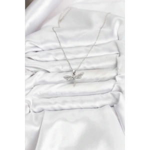 316L Çelik Zincir Gümüş Renk Zirkon Taşlı Kelebek Model Kadın Kolye