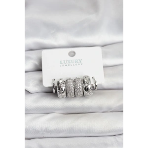 Zirkon Taşlı Pirinç Gümüş Renk Halka Kadın Küpe Seti
