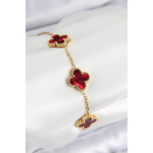316L Çelik Sedefli Kırmızı Gold Renk Yonca Kadın Bileklik