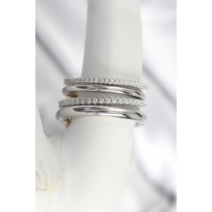 Pirinç Gümüş Renk Zirkon Taşlı 4'Lü Kadın Yüzük