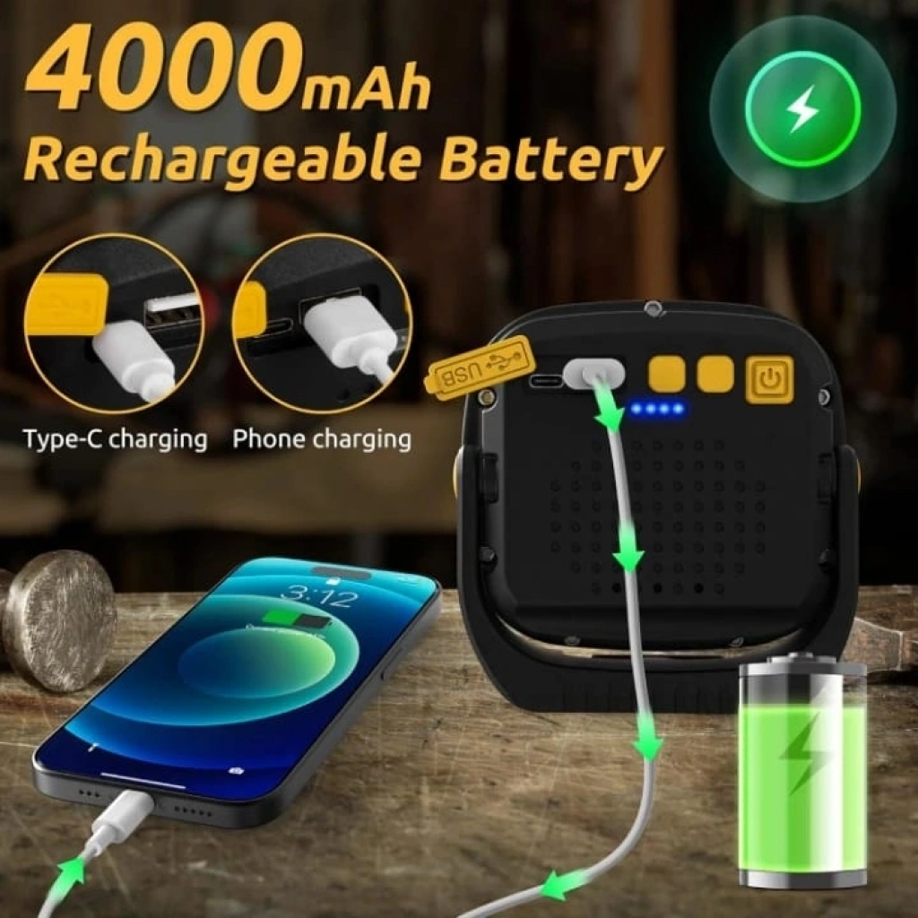 FONKSİYON :   COB Led Aydınlatma, Sarı ve Beyaz Işık Flaşör, Tripod Girişi, Katlanabilir Ergonomik Tasarım Askı Aparatı, Powerbank, 180' Hareket