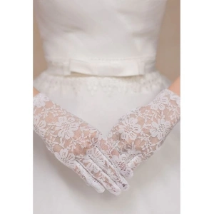 Kısa Boy Güpürlü Beyaz Puantiyeli Tül Eldiven Beyaz Renk