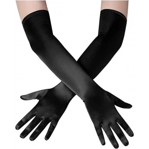 Uzun Boy Ekstra Parlak Saten Eldiven Siyah Renk