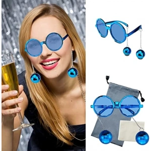 Mavi Renk Disko Toplu Küpeli Parlak Yılbaşı Parti Gözlüğü