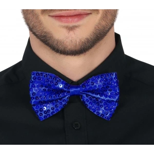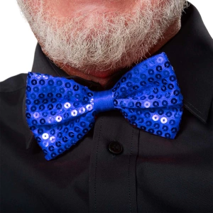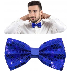 Gece Işıltısı Mavi Payetli Pullu Papyon 7x2 Cm