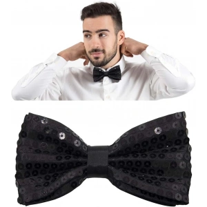Gece Işıltısı Siyah Payetli Pullu Papyon 7x2 Cm