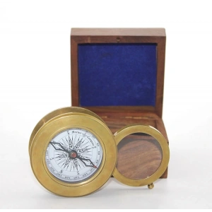 Ahşap Kutulu Pirinç Mercekli Pusula 16040a