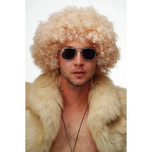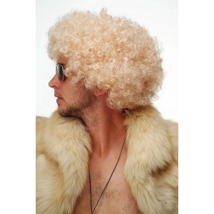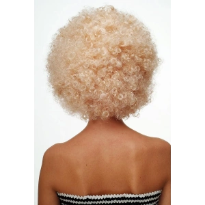 Altın Renk Kıvırcık Afro Bonus Peruk Saç Parti Peruğu Platin Gold