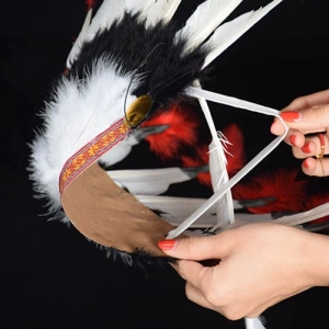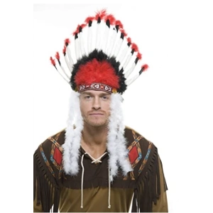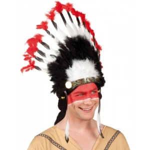 Beyaz Tüylü Siyah Kırmızı Büyük Hintli Kızılderili Başlığı