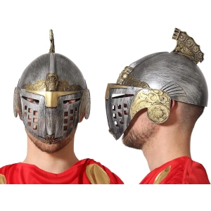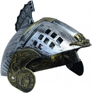 Gümüş Üzeri Altın Renk Oynar Başlıklı Romalı Bizans Kaskı Miğferi 25x20 Cm