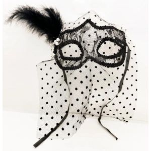 Siyah Renk Siyah Puantiyeli Duvaklı İncili Parti Maskesi