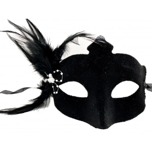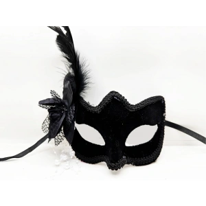 Siyah Renk Yandan Tüylü Süet Kaplama Beyaz İncili Parti Maskesi 18x15 Cm