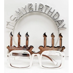 İt39s My Birthday Yazılı Taç Ve Mum Şekilli Gözlük Seti Gümüş Renk