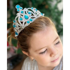 Mavi Taşlı Elsa Çocuk Tacı Prenses Tacı Kraliçe Tacı 16x14 Cm