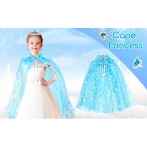 Karlar Ülkesi Elsa Frozen Mavi Pelerin – 80 Cm Kar Desenli Çocuk Pelerini ( Taç Hariç )