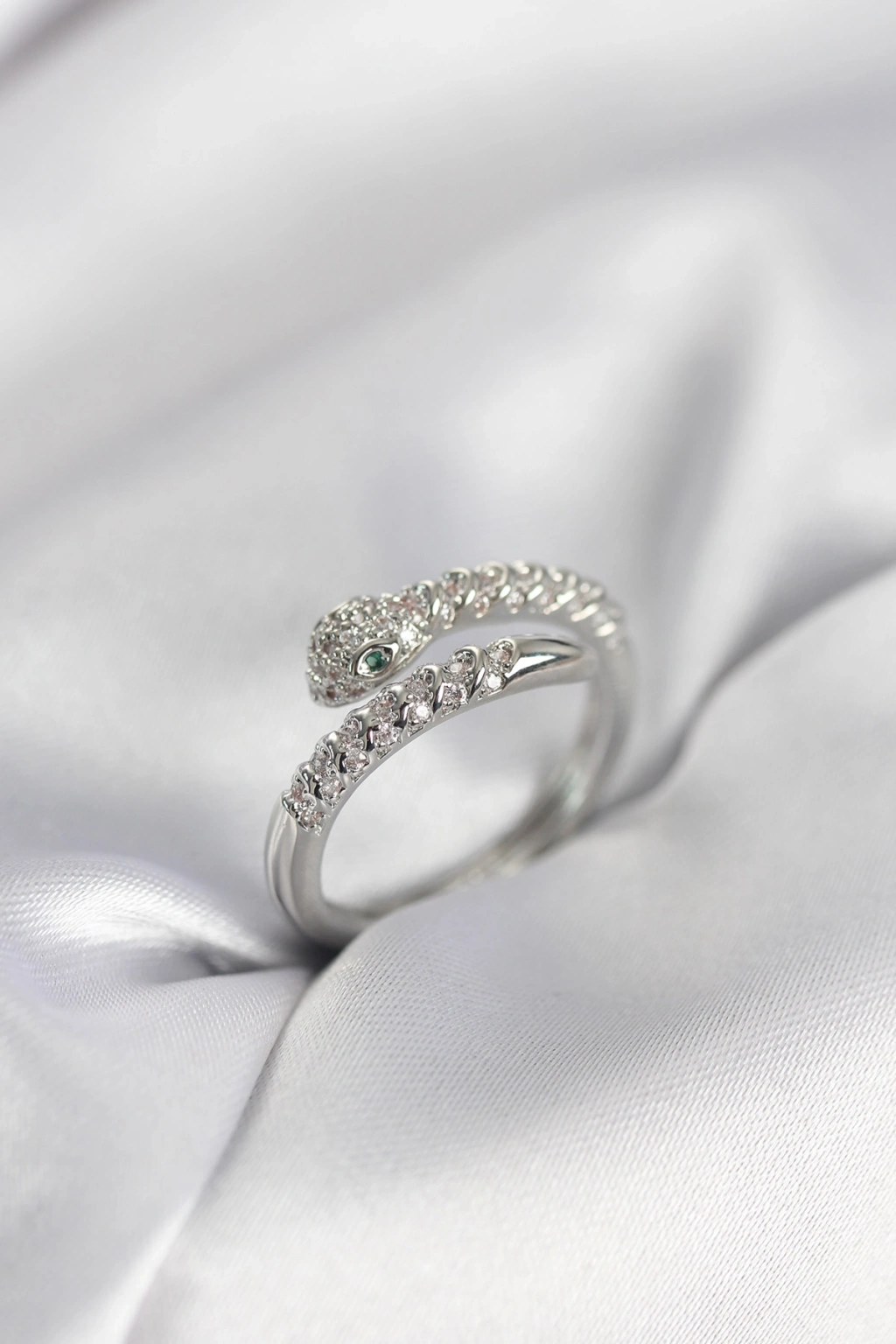 Yılan Model Gümüş Renk Zirkon Taşlı Kadın Yüzük