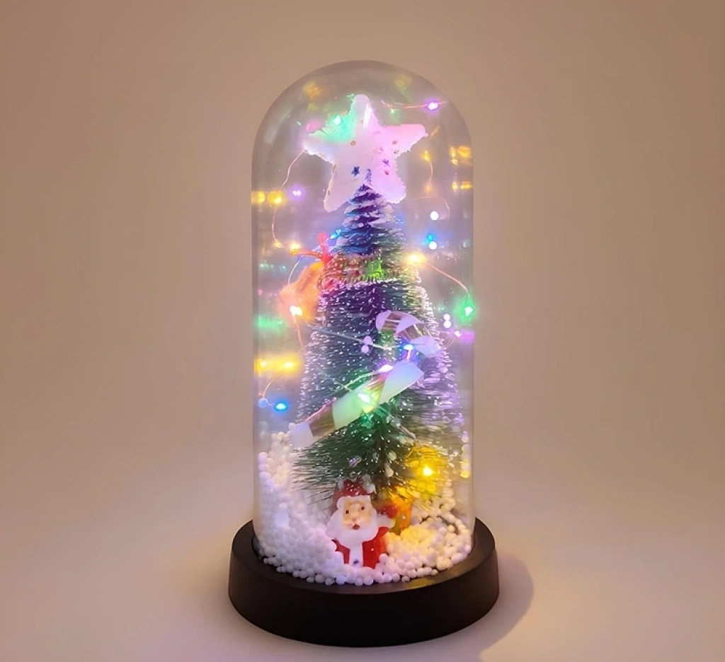Yılbaşı Temalı Işıklı Dekoratif Cam Fanus Alk5077 Ürün Ölçüleri 21*11 Cm