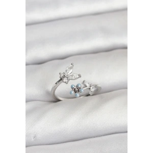 Zirkon Taşlı Gümüş Kaplama Kelebekli Kadın Yüzük