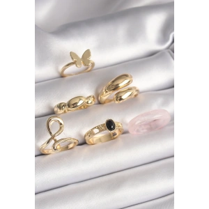 Pirinç Gold Renk Kelebek Figür Sarmal Model 6'Lı Kadın Yüzük Seti