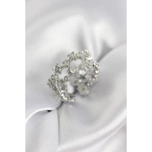 Pirinç Gümüş Renk Beyaz Gül Model Ayarlanabilir Kadın Yüzük