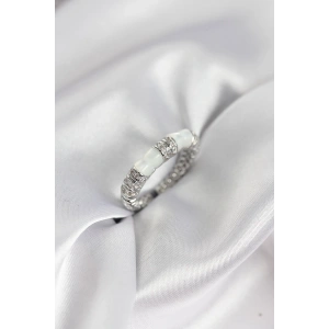 Zirkon Taşlı Sarmal Sedefli Gümüş Renk Kadın Yüzük