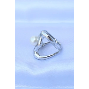 Pirinç Gümüş Renk Ayarlanabilir İnci Taşlı Yüzük