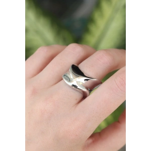 Pirinç Gümüş Renk Ayarlanabilir İri Bombeli Yüzük