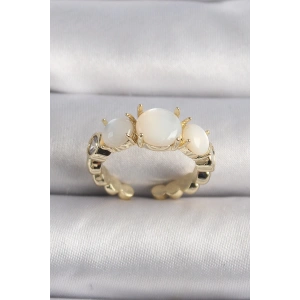 Pirinç Gold Renk Zirkon Taş Detaylı Beyaz Sedefli VIP Seri Kadın Yüzük