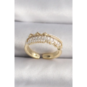 Pirinç Gold Renk Zirkon Taşlı İnci Detay VIP Seri Kadın Yüzük