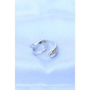 Pirinç Gümüş Renk Zirkon Taşlı Geometrik Ayarlanabilir Yüzük