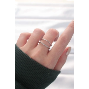 2li Görünümlü Su Yolu Tasarımlı Silver Renk Ayarlanabilir Yüzük
