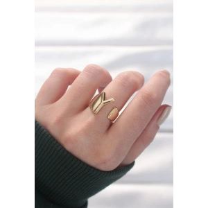 2li Görünümlü Su Yolu Tasarımlı Gold Renk Ayarlanabilir Yüzük