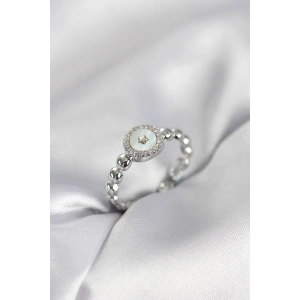 Gümüş Renk Daire Form Sedef ve Zirkon Taşlı Kadın Yüzük