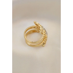 Gold Renk Zirkon Taşlı Pirinç Kadın Yüzük