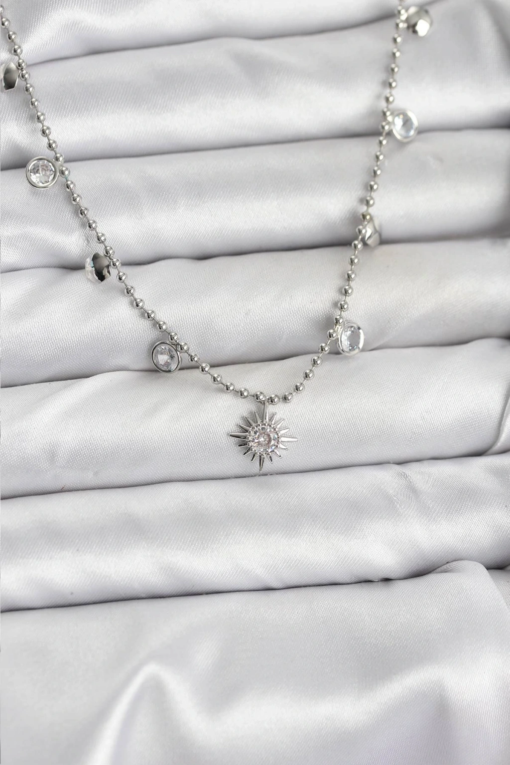 Zirkon Taşlı Kutup Yıldızı Model Pirinç Gümüş Renk Kadın Kolye