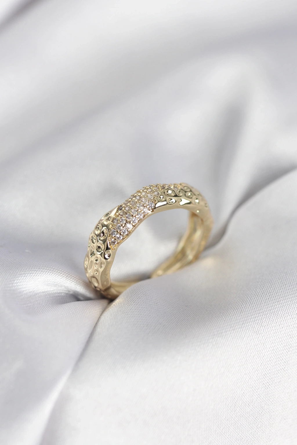 Zirkon Taşlı Puntalı Gold Renk Kadın Yüzük