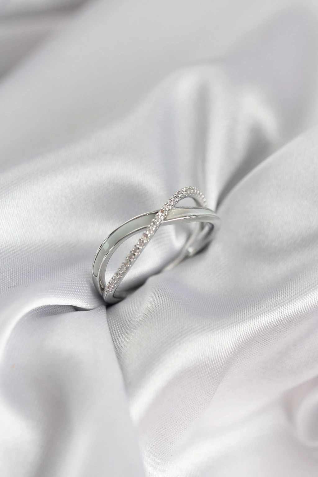 Zirkon Taşlı Sarmal Sedefli Gümüş Renk Kadın Yüzük